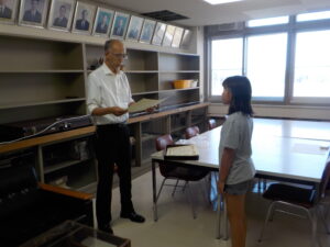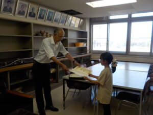 本日、校長室にて「ひながら書き方コンクール」の表彰式を行いました。見事、奨励賞に選ばれた児童もいました。