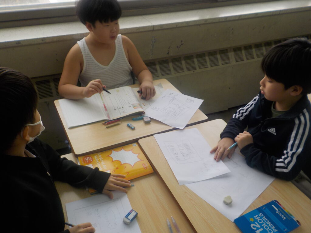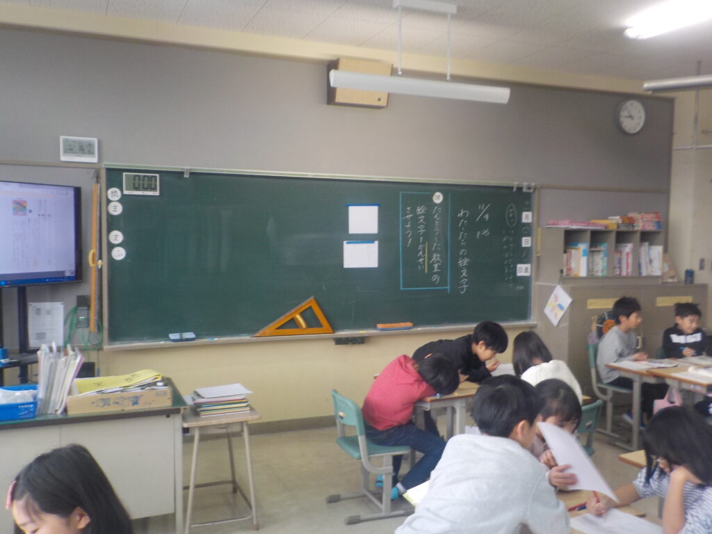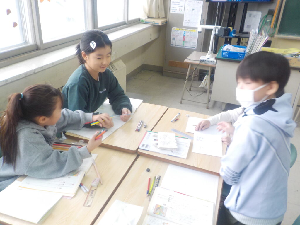 3年生は、国語の時間に「くらしと絵文字」という単元を学習しています。説明文を学習したあとに、実際に、西小学校にどんな絵文字があったらよいかを話し合い、制作をしていました。友達と協働的に話し合いながら進めて様子が見られました。