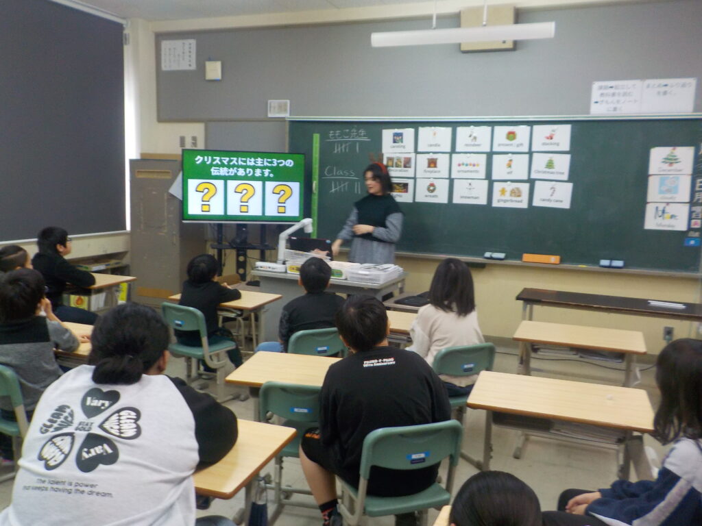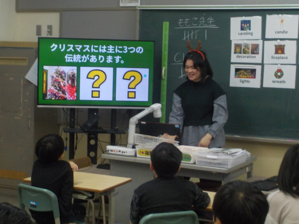 4年生は外国語の時間で、クリスマスに関係するクイズに取り組んでいました。ALTの先生と一緒に楽しく外国の文化に慣れ親しんでいました。