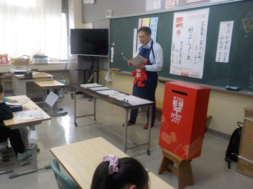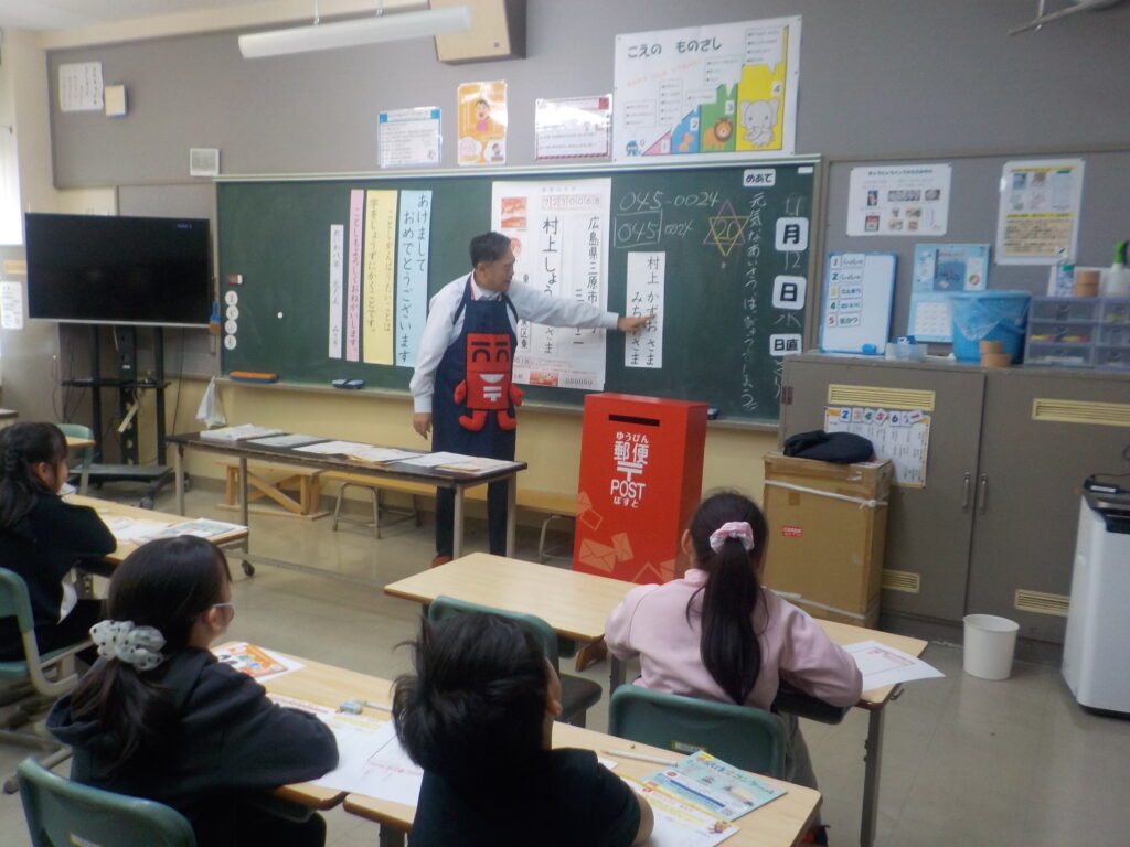 本日は、2年生教室に郵便局の方が来校し、「手紙書き方教室」を開いていただきました。ハガキの宛名の書き方を丁寧に教えてくださいました。とてもわかりやすく、子どもたちは興味津々に活動していました。