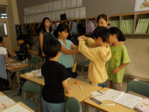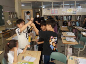 3年生は現在算数の時間「重さ」の学習に取り組んでいます。今日はその1時間目でした。重さを比べるにはどうしたらよいか、そして、どちらがどのくらい重いのかを調べるにはどうしたらよいのかという疑問を持ちながら学習を進めていました。